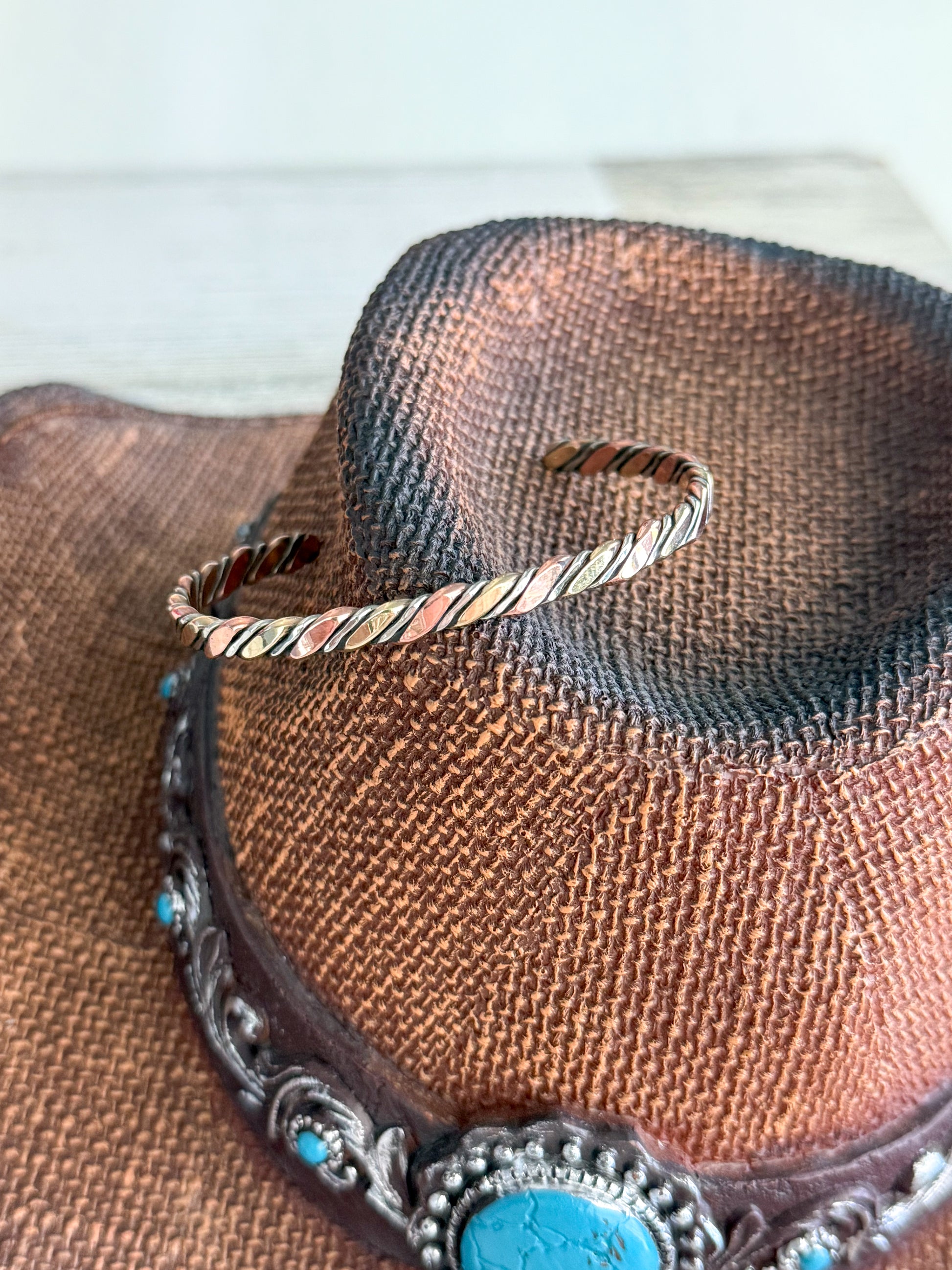 A timeless mixed-metal bracelet that blends traditional Native American artistry with versatile, wearable design.