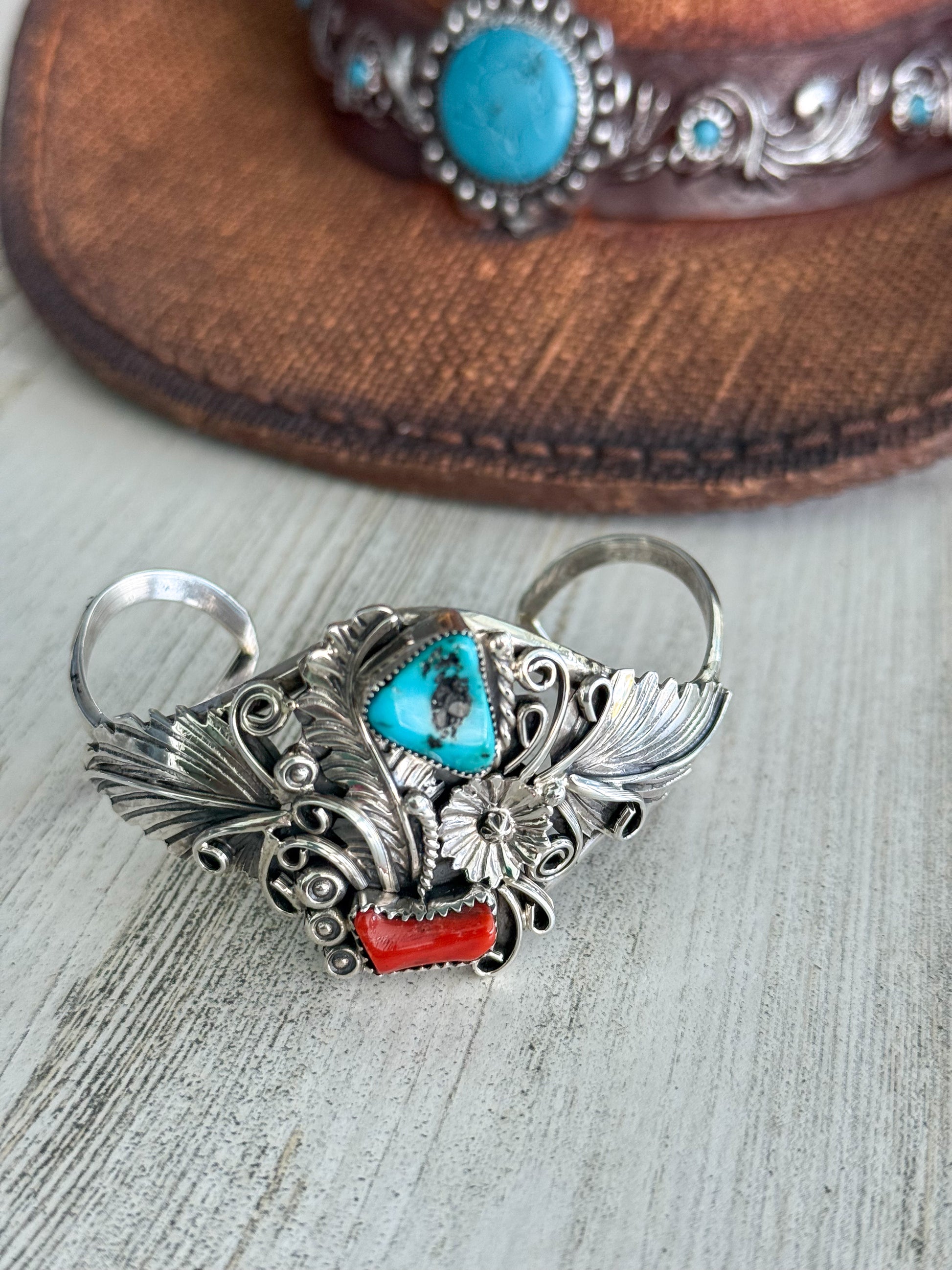 Native American Coral & Turquoise Cuff 6.75”
