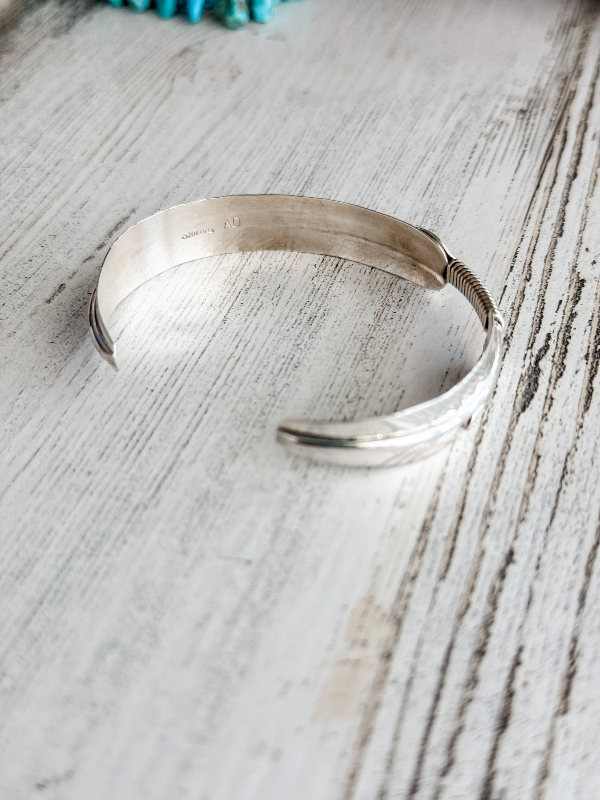 Native American Feather Sterling & Turquoise Wrap Cuff 6.25”