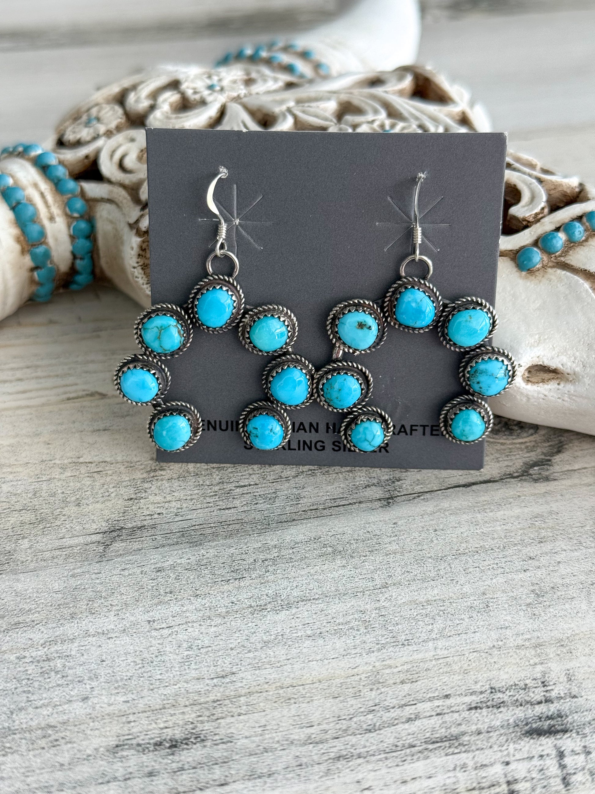 Elevate your jewelry collection with these stunning Kingman Naja earrings, handcrafted by Navajo artist Rita Dawes. Featuring the iconic Naja design, a symbol of protection and heritage in Navajo culture, these earrings showcase the vibrant beauty of Kingman turquoise set in sterling silver.