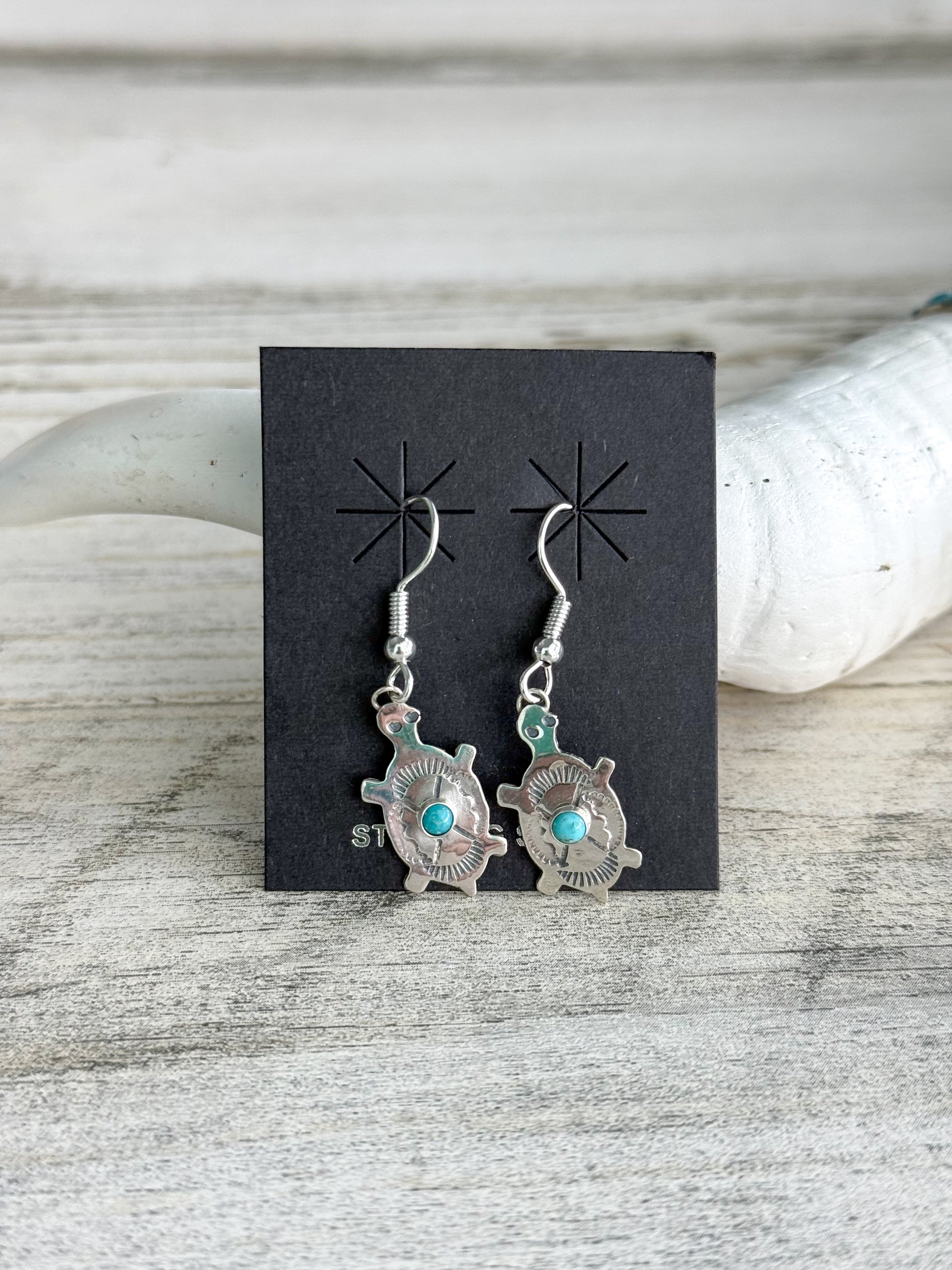 Handcrafted by Navajo artist Lucille Plater, these charming turtle-shaped earrings capture the playful spirit and intricate craftsmanship of Native jewelry. Made from sterling silver, they are lightweight, durable, and perfect for everyday wear or as a unique gift.
