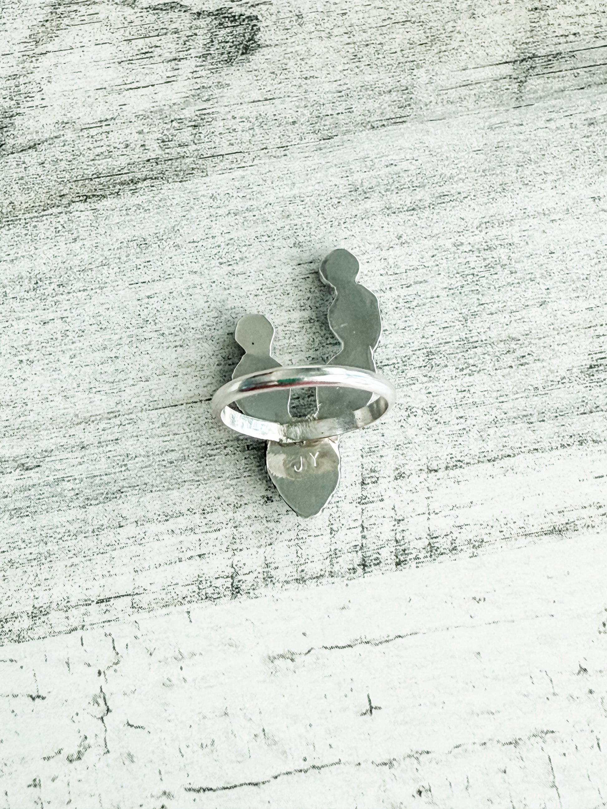 Embrace the vibrant beauty of the Southwest with this exquisite turquoise and coral cactus ring, handcrafted by acclaimed Navajo artist Jeanette Yazzie. Featuring four vivid turquoise stones and two rich coral accents, this ring captures the striking colors and natural motifs that define Navajo artistry.
