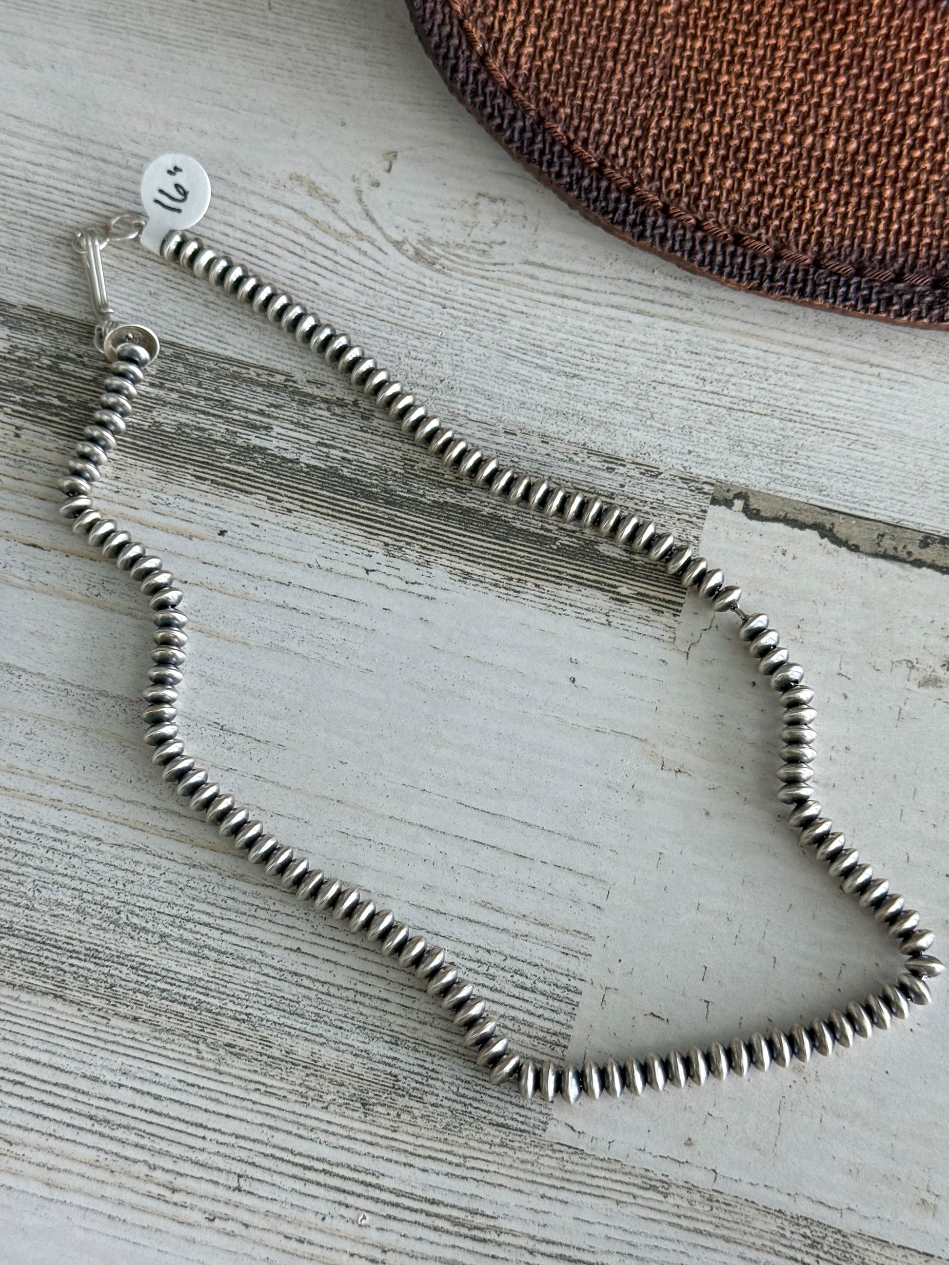 Showcase the timeless elegance of authentic Navajo pearls with this beautiful necklace by renowned Navajo artist Bryannen Halwood. Expertly crafted, this piece highlights the classic luster and sophistication of Navajo pearls, making it a versatile and stylish accessory.