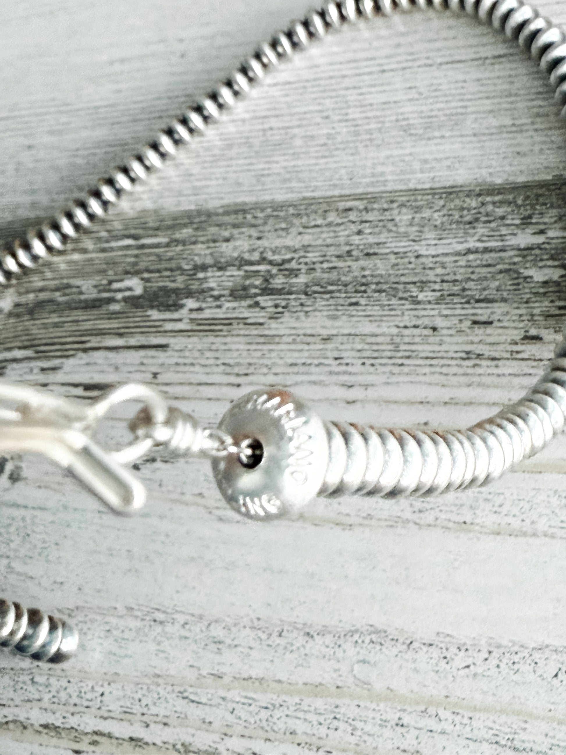 Showcase the timeless elegance of authentic Navajo pearls with this beautiful necklace by renowned Navajo artist Dorinda Mariano. Expertly crafted, this piece highlights the classic luster and sophistication of Navajo pearls, making it a versatile and stylish accessory.
