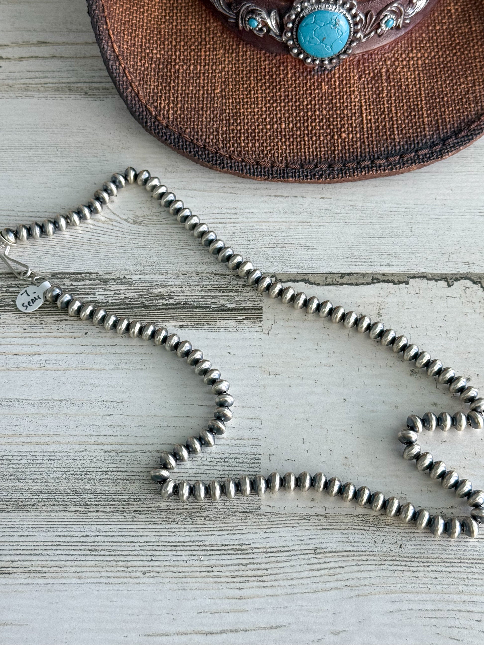 Showcase the timeless elegance of authentic Navajo pearls with this beautiful necklace by renowned Navajo artist Bryannen Halwood. Expertly crafted, this piece highlights the classic luster and sophistication of Navajo pearls, making it a versatile and stylish accessory.