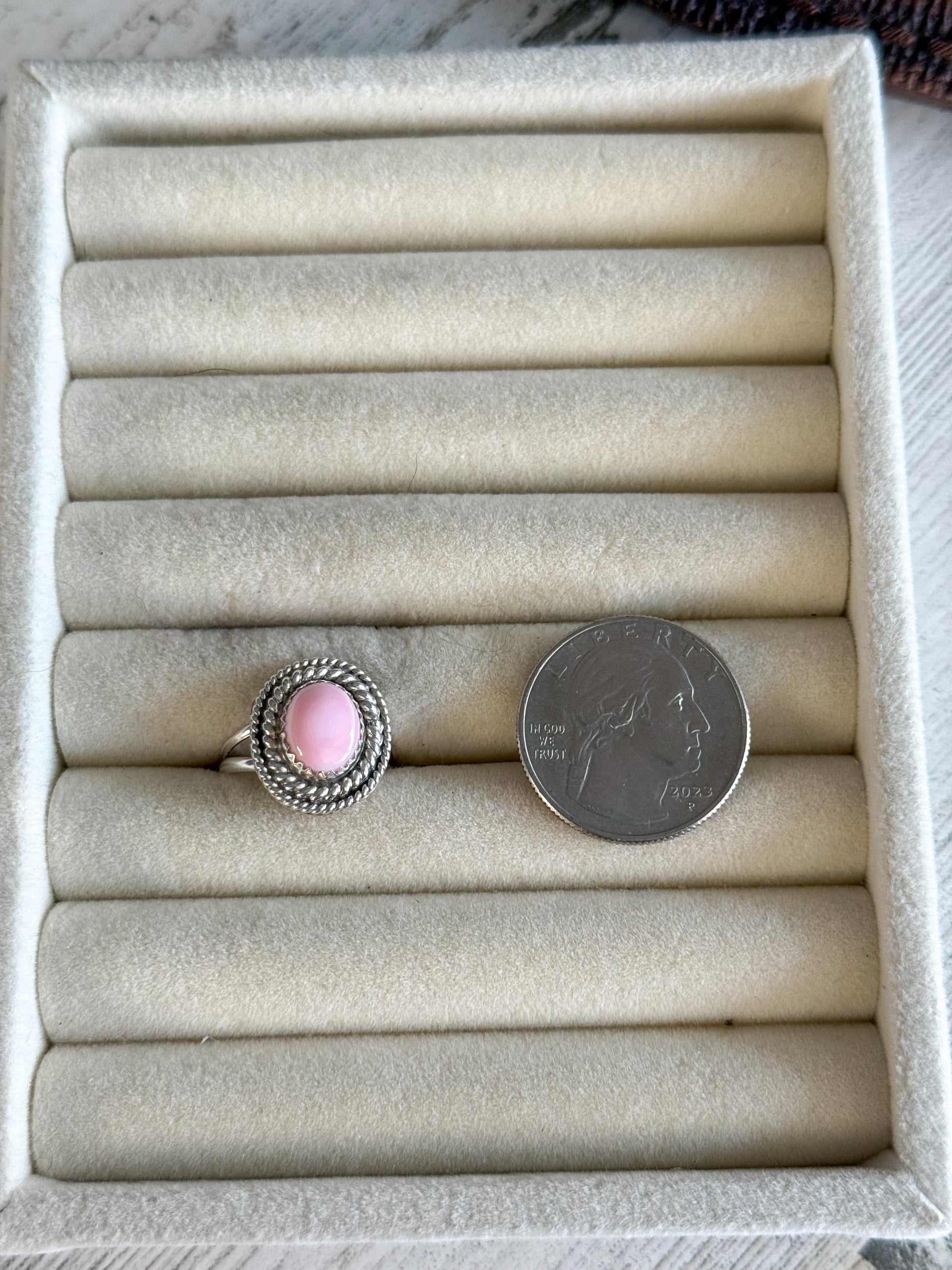 Soft, elegant, and artisan-made, this beautiful Pink Conch ring handcrafted by Navajo artist Byron Begay brings a gentle pop of color to any jewelry collection. Its warm pastel tones pair perfectly with Begay’s traditional sterling-silver detailing, creating a timeless and feminine piece.