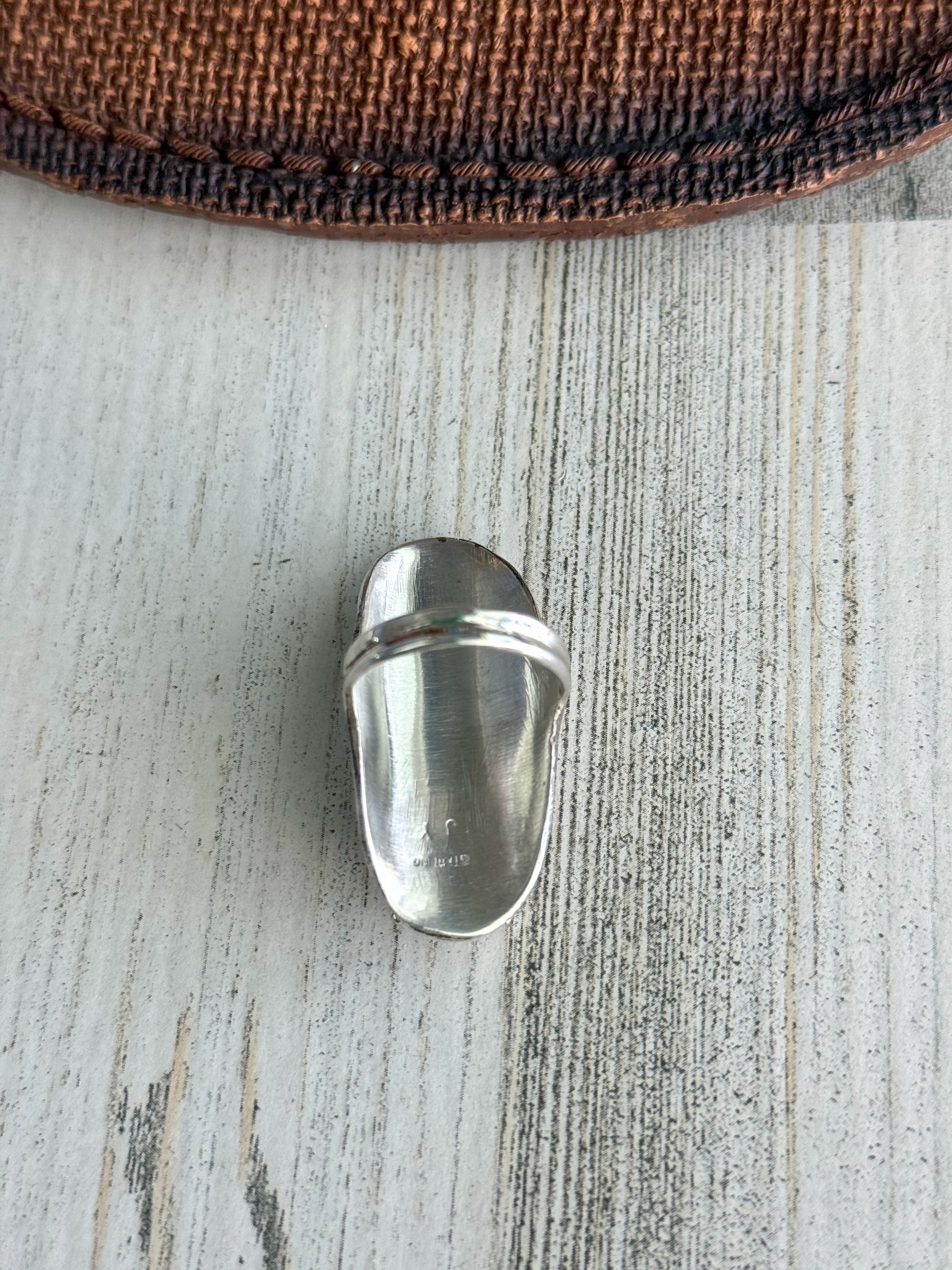 Signed by the artist, this piece guarantees authenticity and is a perfect addition to a collector’s gallery or as a standout accessory for anyone seeking meaningful, handcrafted jewelry. Ring size 8.5 ensures a comfortable fit for most wearers.