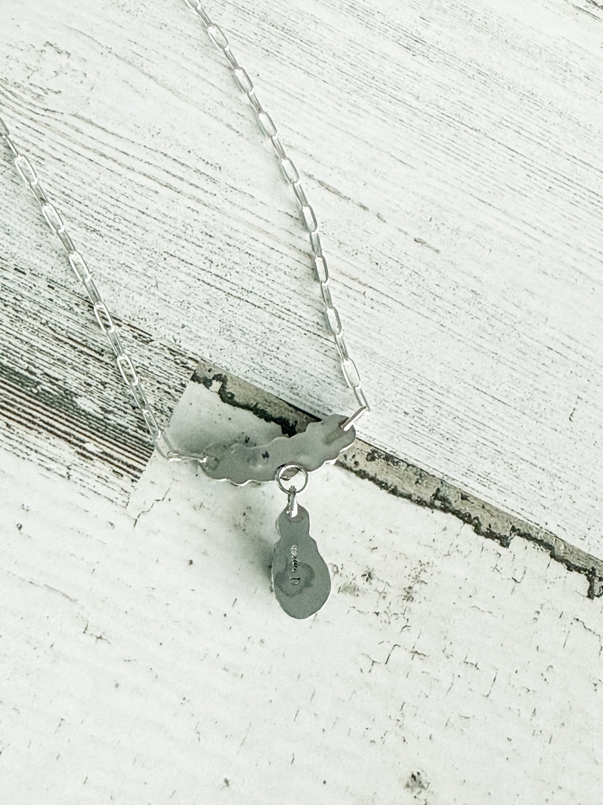The pendant is expertly set in .925 sterling silver and suspended from an 18" sterling silver chain, offering the perfect balance of sophistication and everyday wearability. Each necklace is artist-stamped by Rita Dawes, ensuring authenticity and honoring the tradition of Navajo silversmithing.
