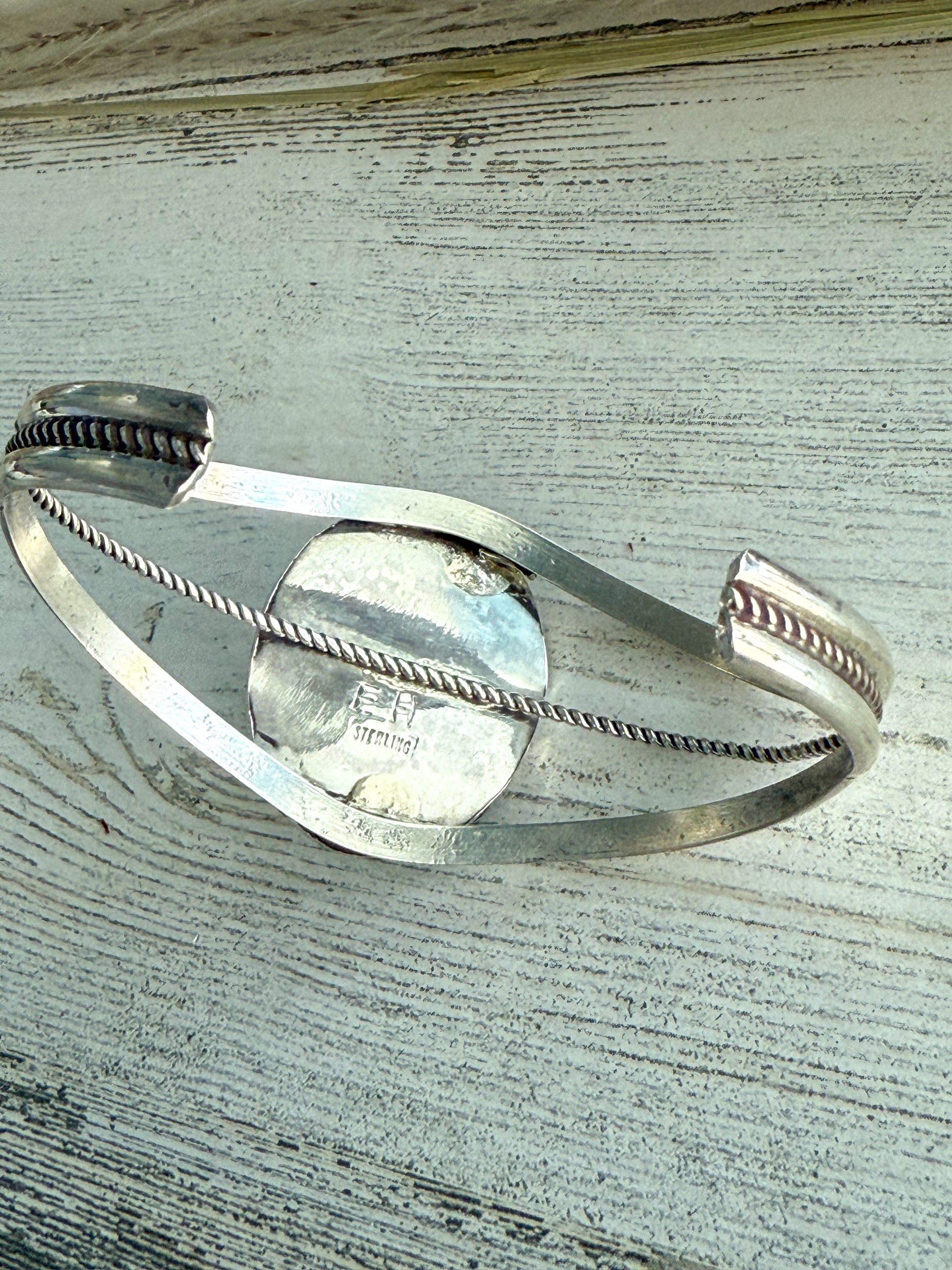 This striking handcrafted cuff showcases a vivid Sonoran Rose Turquoise center stone, prized for its rich color and natural beauty. Created by renowned Navajo artist Ernest Hawthorn, the bracelet reflects the timeless artistry and craftsmanship of Native American silversmithing.