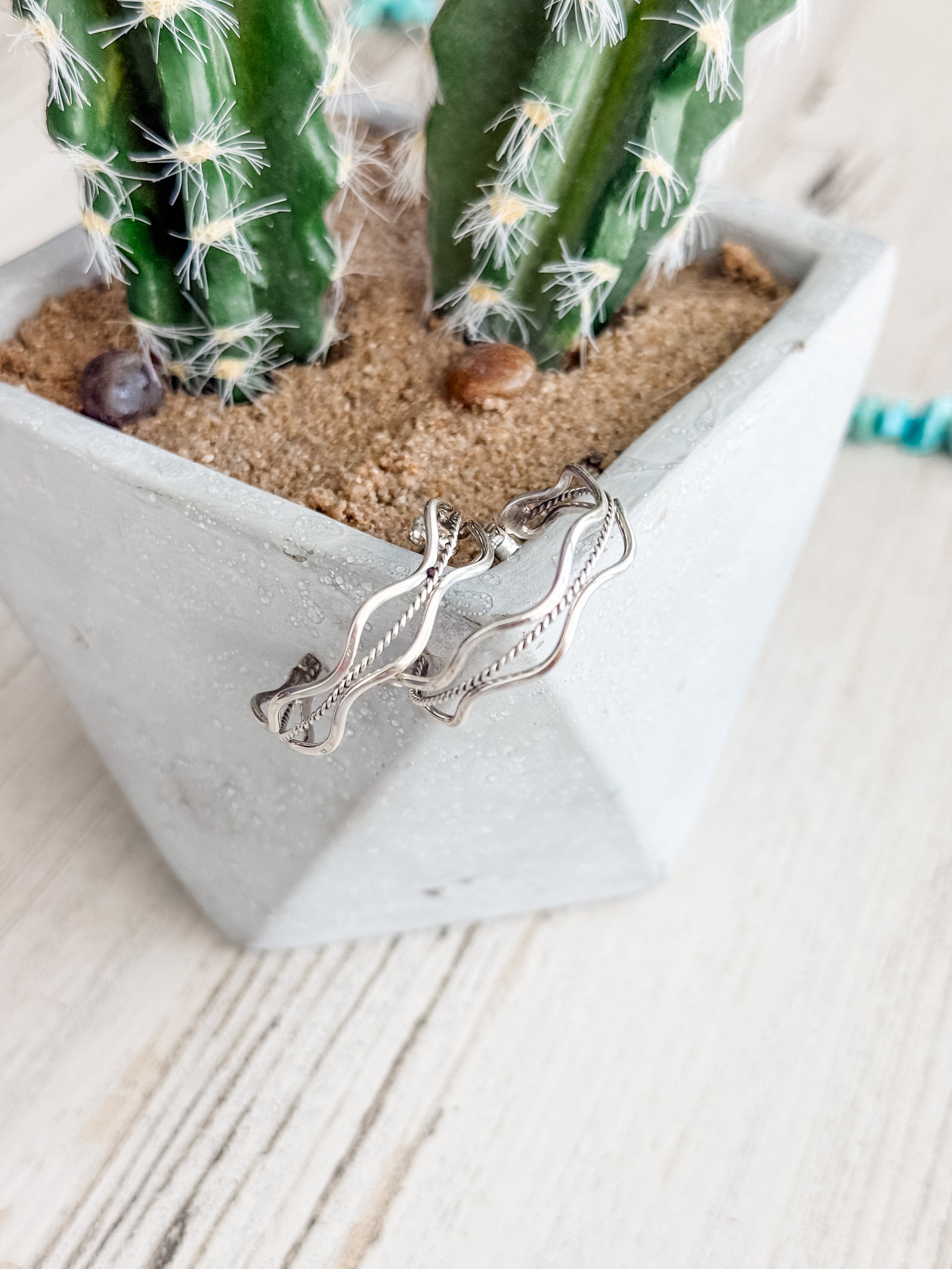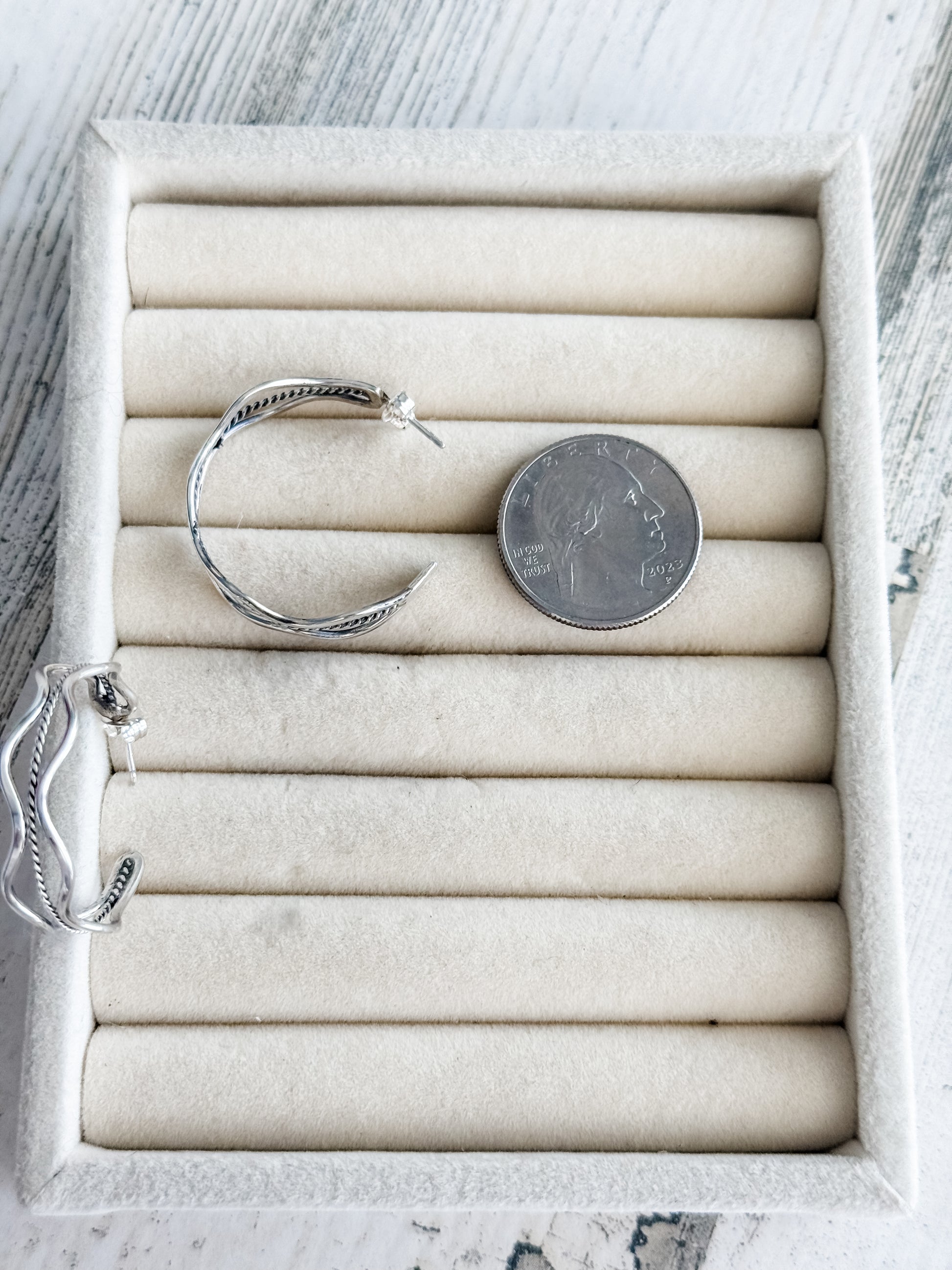 Elevate your jewelry collection with these Sterling Silver Hoop Earrings by Navajo artist Elaine Tahe. Expertly handcrafted, these hoops showcase the timeless elegance and skill of Navajo silversmithing.