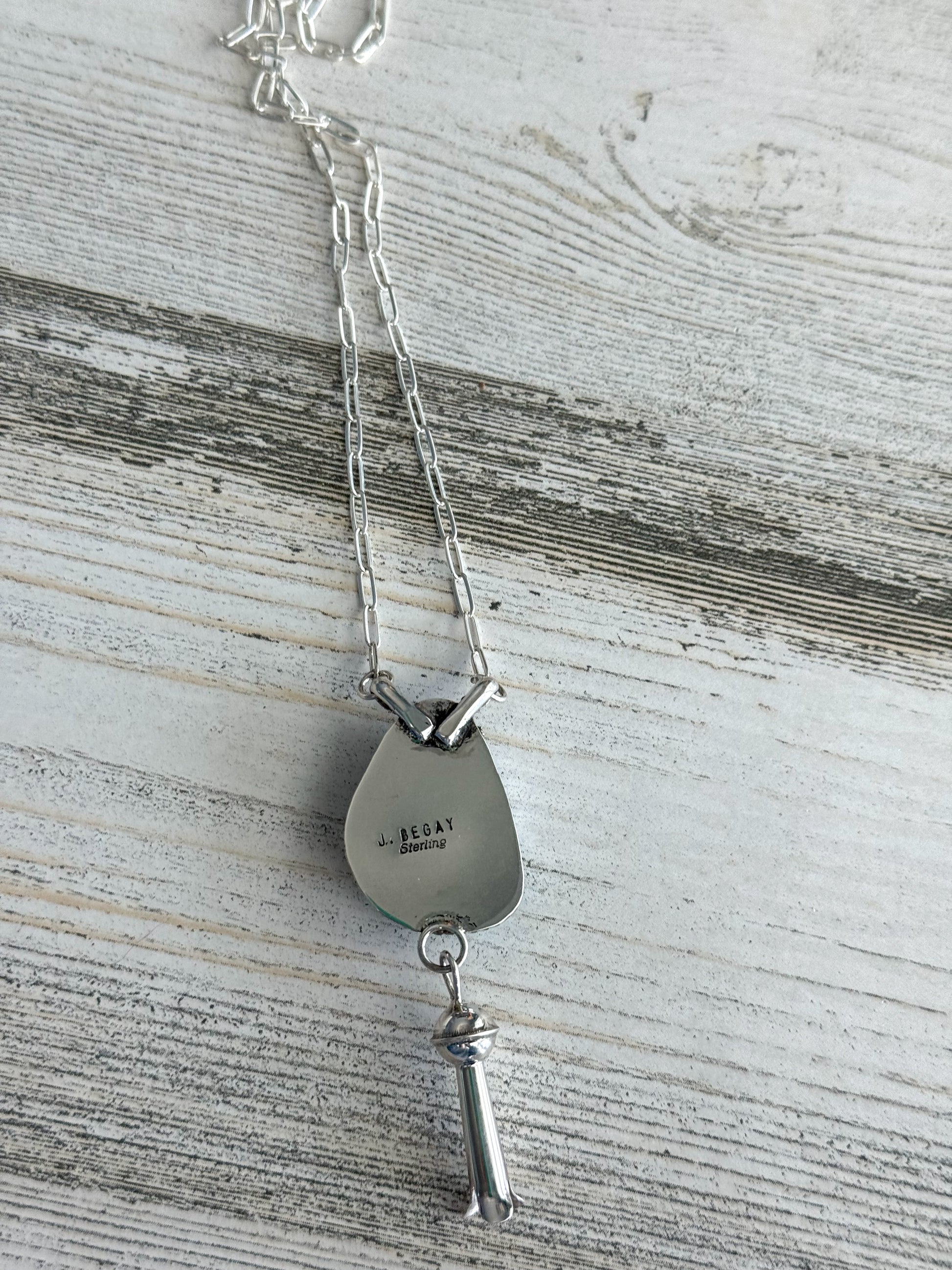 Add a touch of authentic Navajo artistry to your jewelry collection with this exquisite pendant necklace by Junior Begay. The centerpiece features a vibrant blue turquoise stone, beautifully accented by a sterling silver blossom for a timeless and elegant design.
