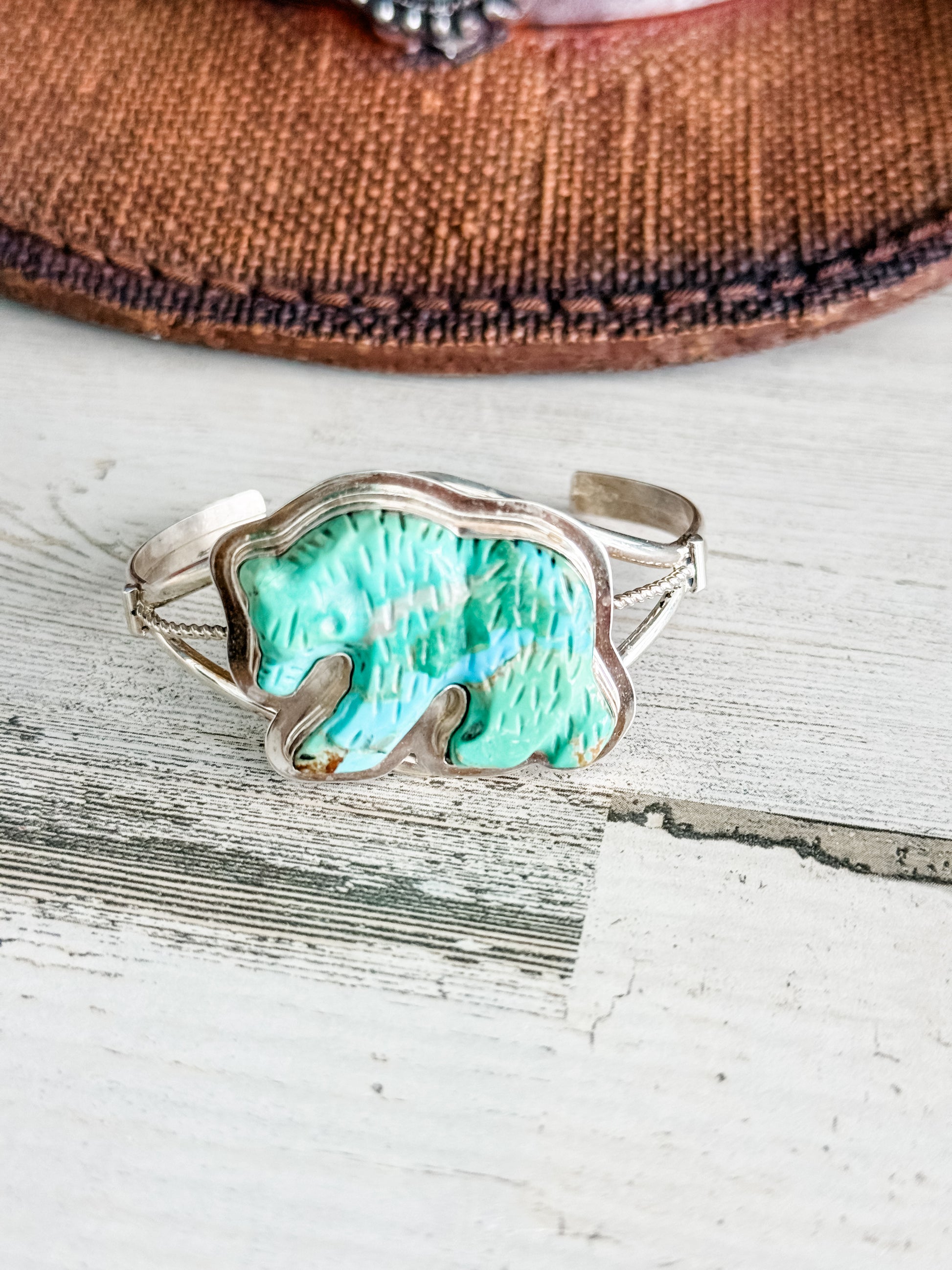 Native American Turquoise Carved Bear Cuff 6.5"