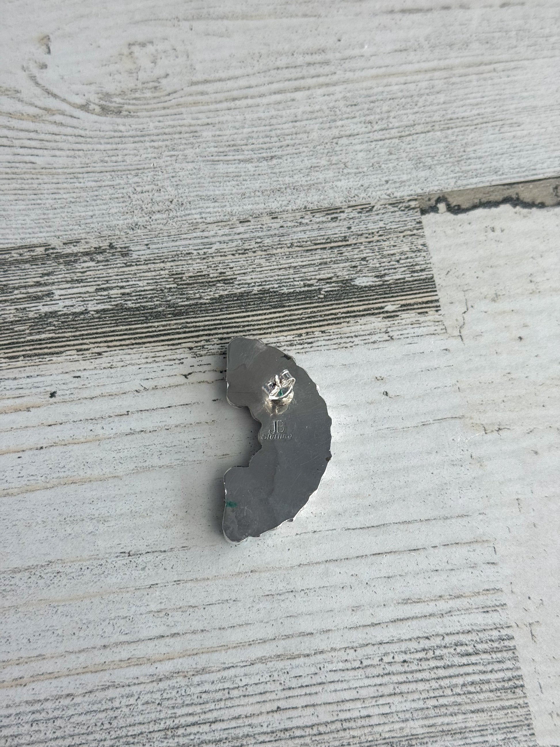 Elevate your jewelry collection with these exquisite Native American Turquoise Cluster Earrings, handcrafted by Navajo artist Jason Benally. Measuring 1.5" long by 0.75" wide, each earring features a stunning arrangement of light blue turquoise stones with subtle brown matrix accents, creating a striking natural pattern. The earrings are signed by the artist, ensuring authenticity and showcasing the masterful craftsmanship of Navajo jewelry traditions. Perfect for adding a touch of Southwestern elegance to any outfit.