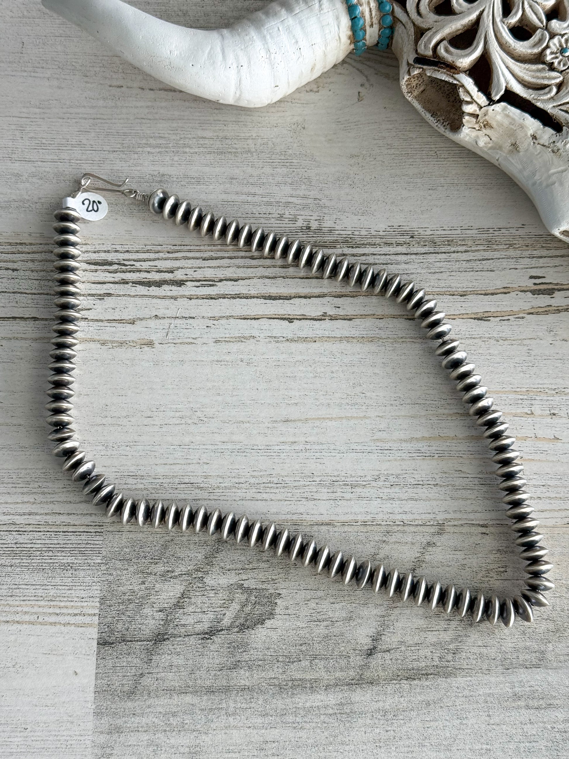 Ideal for layering or wearing alone, this signed Navajo pearls necklace is perfect for both everyday elegance and special occasions. Its refined design reflects the artistry and tradition of Navajo jewelry making.