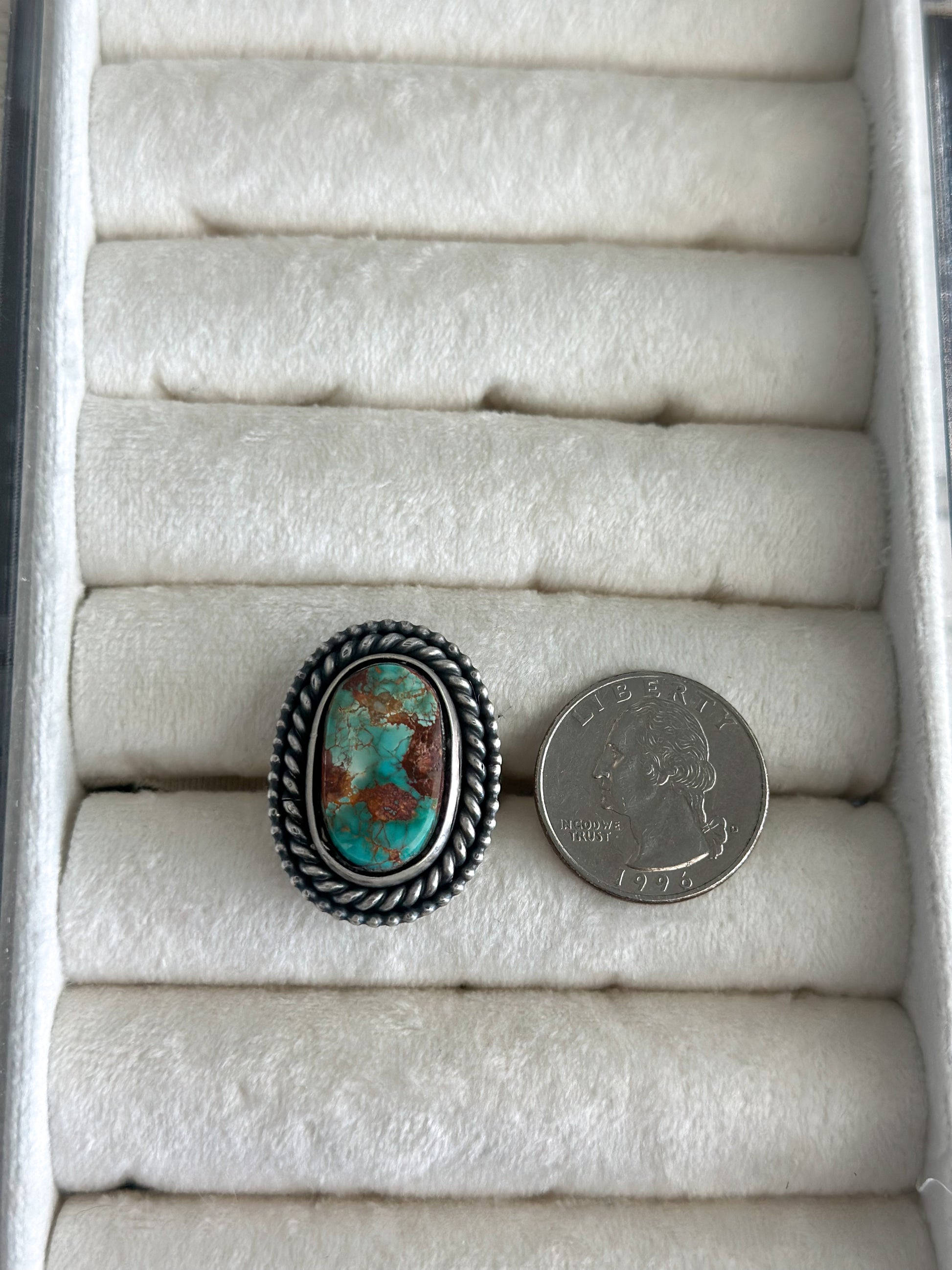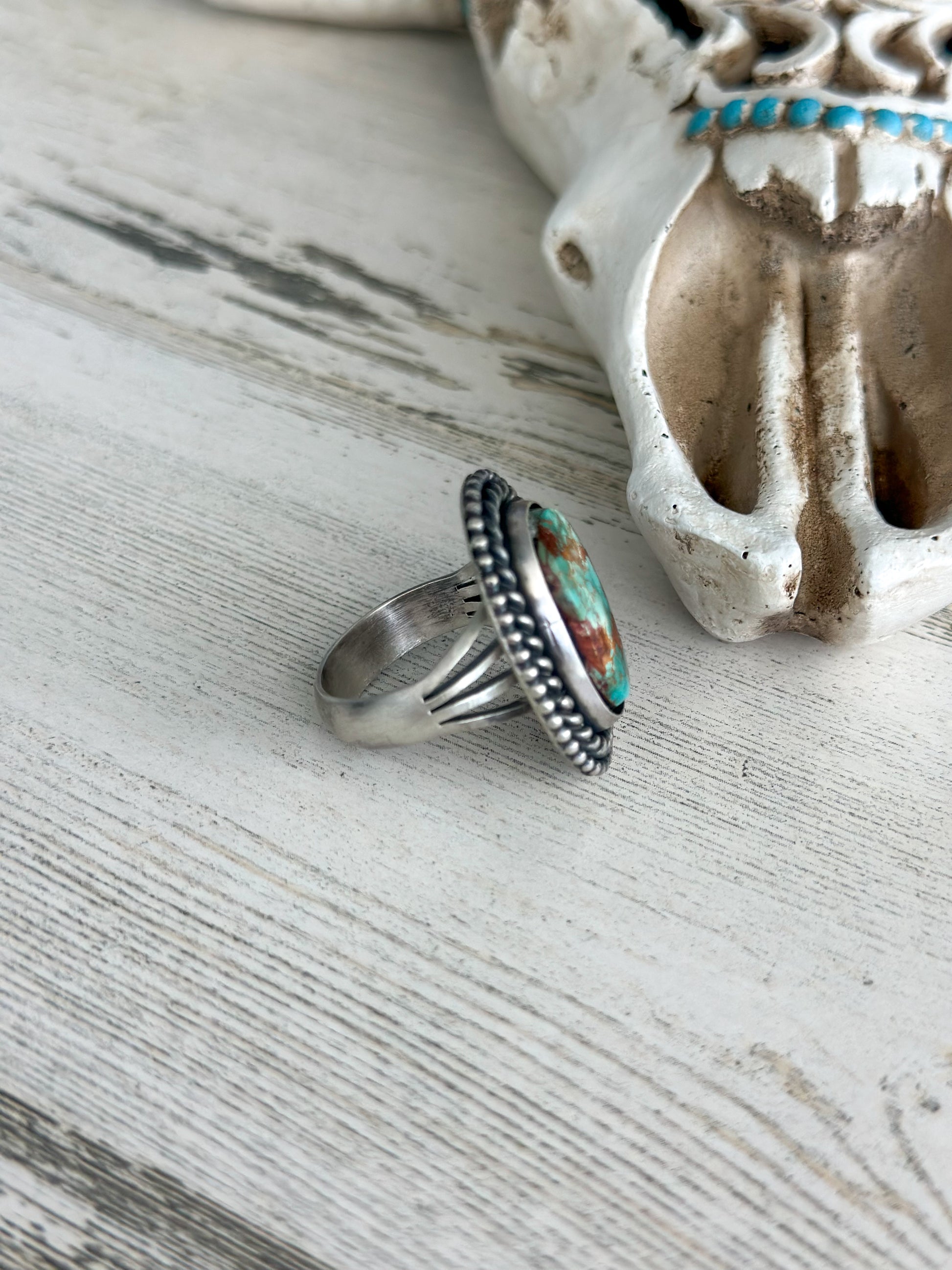 Elevate your jewelry collection with this one-of-a-kind Royston Turquoise ring, expertly handcrafted by Navajo artisan Daniel Benally. This unique ring features a richly colored Royston Turquoise stone, known for its striking green hues and golden matrix, set in solid sterling silver.