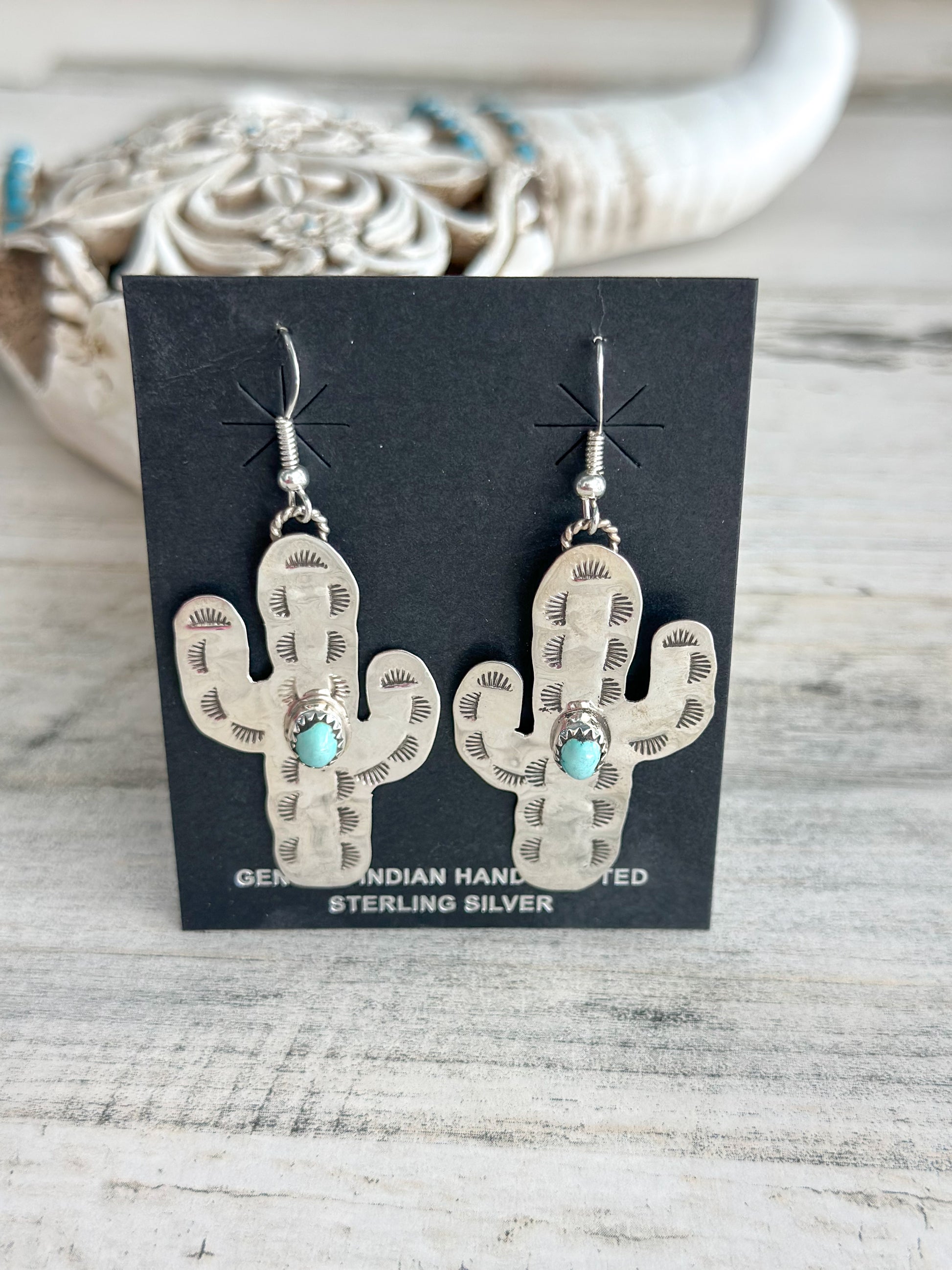 Native Made Sterling & Turquoise Cactus Earrings